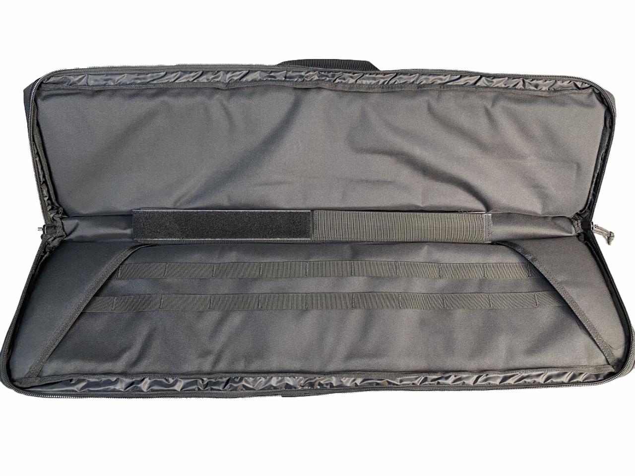 These single weapon cases are constructed of a padded interior for maximum weapon protection. There is an outside deep double pocket (measures 8.5″ x 8″ x 1.5″) for ammo, eye and ear protection or cleaning gear. Includes rows of exterior PALS webbing that allows you to attach your modular gear pouches, that correspond to your weapon. Features inside hook-n-loop weapon hold-down straps, padded muzzle protector and added PALS webbing for additional customization. Complete with a detachable padded adjustable shoulder strap, nylon self-repairing locking zippers, and a reinforced wrap carry handle.