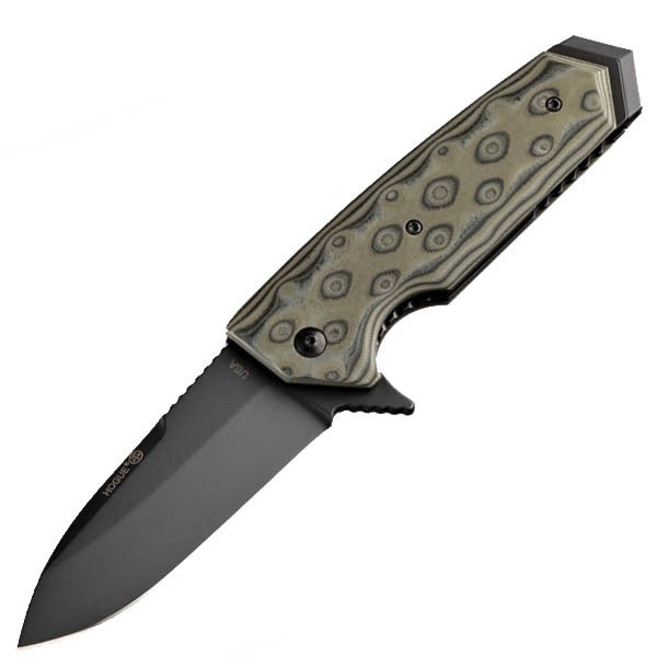 Introduced in 2012, the EX-02 is the first liner lock in the Extreme Series Knives. Every aspect was carefully engineered to ensure the user would get a tool they could treasure and pass down to the next generation. Unique features about this knife include an extra thick hardened stainless steel liner lock and a manual safety that prevents the lock from failing under extreme use. This knife design can be effortlessly opened using the ambidextrous thumb stud or optional flipper tab. The flipper option allows for faster opening and provides a guard in front of the finger groove. The blade can be easily closed with one hand, even while wearing gloves. A solid back end allows the knife to be used as a striking tool and a deep finger groove helps control the EX-02 during use.