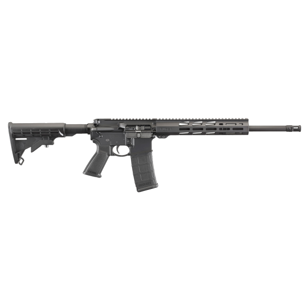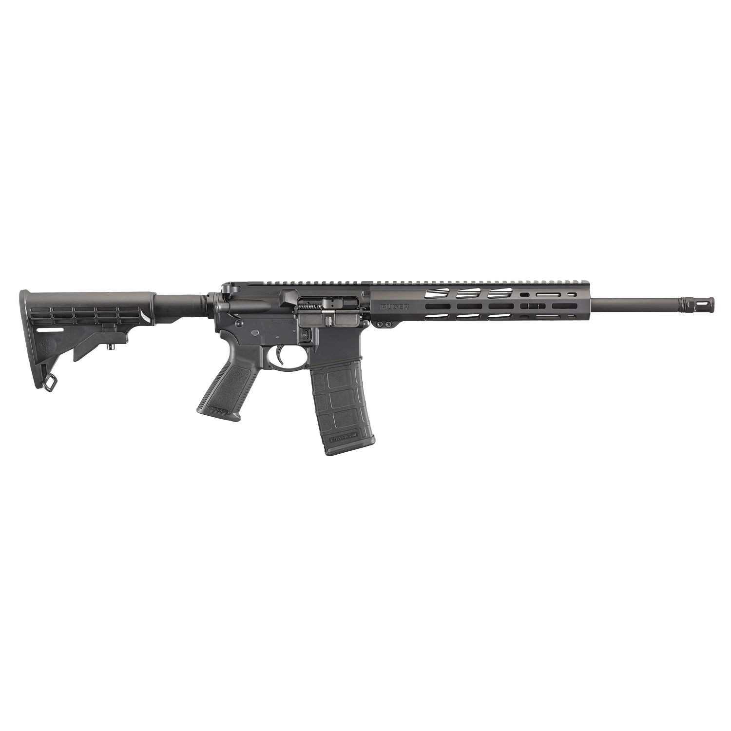 - Equipped with a heavy contour, cold hammer-forged alloy barrel with 1:8″ twist rifling that provides exceptional accuracy with bullets from 35 to 77 grains. M4 feed ramps and 5.56 NATO chamber allows the use of both 5.56 NATO and .223 Rem. ammunition. The barrel and 1/2″-28 Ruger® flash suppressor have a matte black oxide finish to reduce glare and provide corrosion resistance.