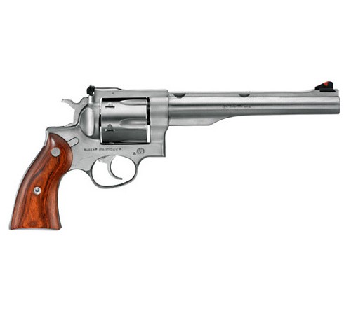 For Big Game Hunting, Think Big Bore Revolvers. The Ruger Redhawk 5003 revolver was Ruger’s first double-action revolver specifically designed for the powerful 44 Magnum cartridge. It embodies many advanced features such as a “triple-locking” cylinder, a unique “single spring” mechanism for relatively lighter trigger pull, replaceable front sights and adjustable rear sights, with an all-stainless steel construction.