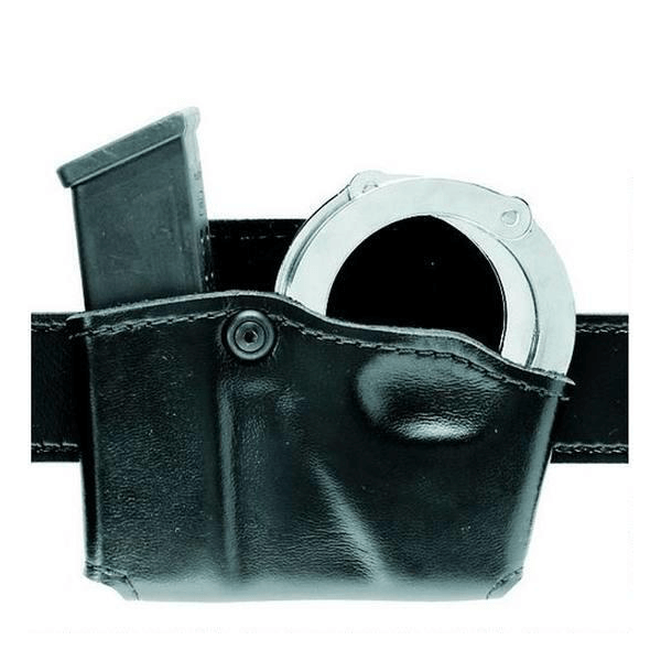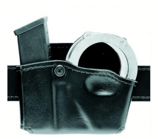 The Safariland 573 Open Top Magazine Handcuff Pouch Right Hand is a handy combination of a magazine pouch and handcuff pouch, complete with a quick on/off paddle for right hand use. The 573 features a suede lining and holds the items securely and quietly. It also features an Allen screw to adjust tension for magazine size. The unique paddle design is rigid in the center and flexible around the edges and includes a self-locking belt hook. The model 573 will fit up to 1.75 inch belt width.