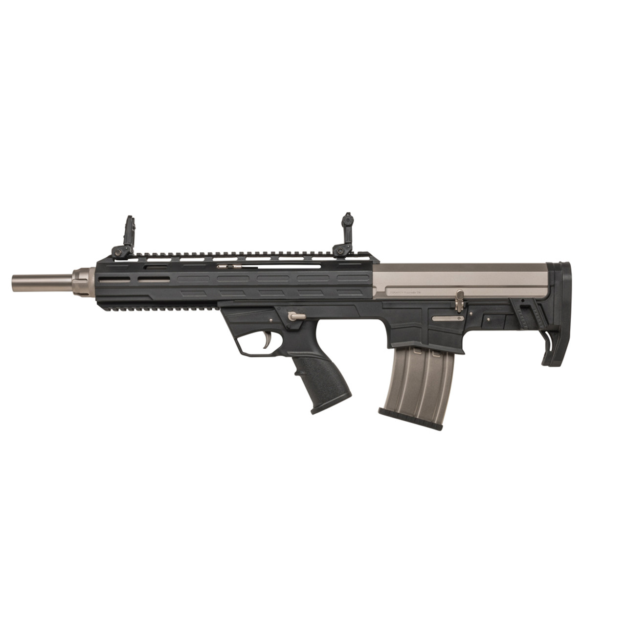 The TBP 12M embodies exactly what gun-enthusiasts love about bull-pup firearms at an affordable price point. This semi-automatic shotgun is fit into a compact footprint that is complimented by a full-length 18.5” barrel with plenty of picatinny rail space for mounting a host of optics and other accessories. The TBP 12 utilizes the industry standard T-1919 shotgun magazines that are available in varying capacities up to 20rds to suit the end-users needs.