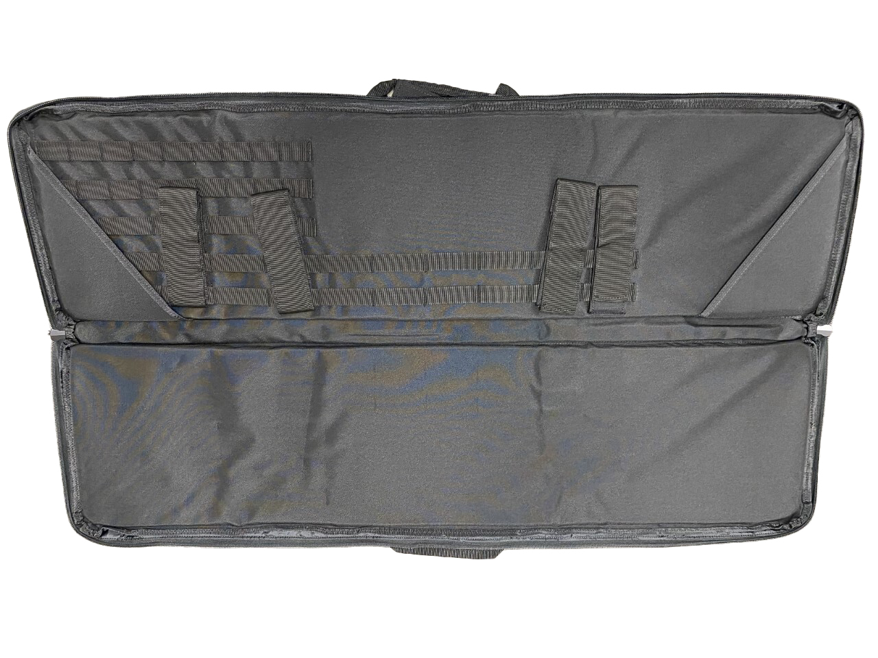 These single weapon cases are constructed of a padded interior for maximum weapon protection. There is an outside deep double pocket (measures 8.5″ x 8″ x 1.5″) for ammo, eye, and ear protection or cleaning gear. Includes rows of exterior PALS webbing that allows you to attach your modular gear pouches, that correspond to your weapon. Features inside hook-n-loop weapon hold-down straps, padded muzzle protector and added PALS webbing for additional customization. Complete with a detachable padded adjustable shoulder strap, nylon self-repairing locking zippers, and a reinforced wrap carry handle.
