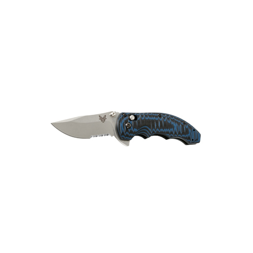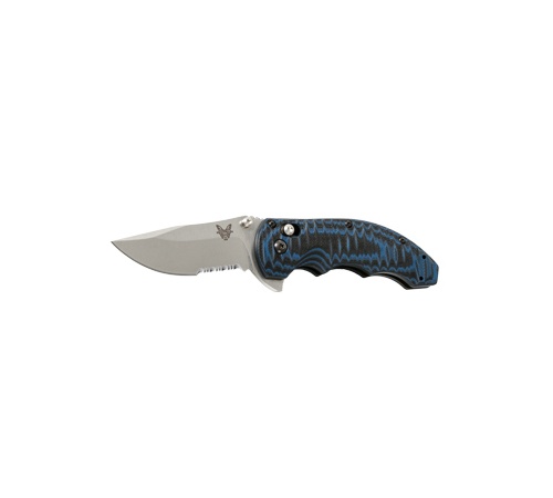 Benchmade 300S-1 AXIS Flipper Folding Knife: The AXIS® flipper is relatively compact but has a full-sized feel thanks to the unique handle shape. Adding a flipper is just one more way to deploy the blade on what is already the most versatile locking mechanism on the market. Benchmade offers this model as a re-issue of their first flipper knife, now with contoured blue/black G10 handles. Combined with the Axis lock, this makes for a great pocketknife for everyday and tactical use. The flipper allows for immediate and lightning fast opening action. The Axis locking system is super strong and also allows for easy, one handed unlocking and closing. The actions of flicking your wrist with your finger on the flipper or the lock to open and close this knife will soon feel perfectly natural and you will wonder how you ever had a different system. The textured G10 handles are also great on these and give good grip in all conditions as well as a nice look! The blade shape is nice on these with a nice “belly” on the flat ground blade. The “belly” means it has a lot of curve and this really allows you to use all parts of the edge while other blade shapes may encourage you to use a particular area of the cutting edge. The pocket clip is reversible and is made for deep pocket carry with the tip up. We really like this model and feel that it will serve you well as an every day carry knife for just about any task you set in front of it.