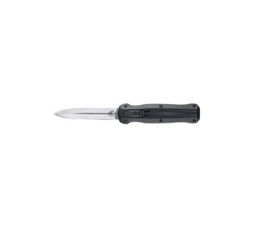 Benchmade 3320 Pagan Automatic OTF Knife: A refined feel from a tried and true warrior. The 3320 Pagan by Benchmade is a double-action out-the-front automatic knife featuring a 3.96″ chisel ground, double-edge spear-point blade. The 154CM stainless steel blade is an American-made premium grade stainless steel originally developed for tough industrial applications. Known for its best all-around qualities, it offers great corrosion resistance with good toughness and edge quality. Comes complete with deep-carry pocket clip and a MOLLE compatible sheath with malice clip. The same incredible mechanism of the Infidel actuates the blade, but the blade is chisel ground (beveled only on one side) and the handles are smooth and designed more for daily use and in-and-out of pocket use. MOLLE¨ compatible.