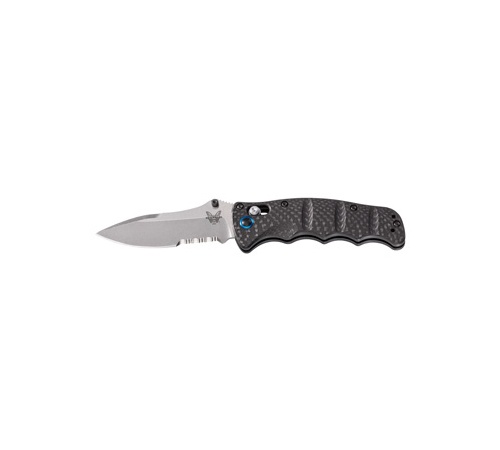 Benchmade 484S-1 Nakamura AXIS Folding Knife: The Nakamura is a beautiful gentleman’s tactical folder. At just under four inches closed, it is very comfortable in the pocket. The CPM-S90V stainless steel coupled with AXIS lock functionality and carbon fiber handles with stainless liners, makes this a top US made folder in our book! A unique tool steel, CPM-S90V is a martensitic stainless steel to which vanadium and carbon have been added for superior wear resistance. CPM-S90V offers substantial improvements in wear resistance over 440C, D2 and other high chromium steels, with corrosion resistance equal to or better than 440C. The contoured carbon fiber handles are a contemporary, premium composite of thin strands of carbon tightly woven into various weave patterns, then set in resin, which is most commonly clear but can be color tinted. It offers great looks and is exceptionally strong for its minimal weight. The 484-1 Nakamura AXIS by Benchmade Knives brings the best of both worlds: detailed design and functional strength.