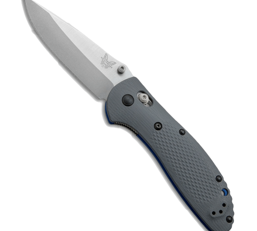 Benchmade 551-1 Griptilian Folding Knife: The Griptilian is born of custom knifemaker Mel Pardue’s passion for functional designs. You release the creature’s ferocity with a thumb stud. At the very heart of the Griptilian, is the exclusive AXIS locking mechanism. This modern marvel gives life to a cutting tool like you have never experienced before, especially in a lightweight folder. Rock-solid ambidextrous function is sure to tame the most die-hard of traditionalists. And you can grab onto the lightweight, handle with its grip-textured surface and rib covered spine that grabs you right back for a “can’t let go” grip. The model 551-1 comes with gray G10 handle scales, blue G10 accents, blue barrel spacers and a reversible deep carry pocket clip for right or left side carry. The blade steel has also been upgraded on this model to CPM-20CV stainless steel. CPM-20CV is virtually identical in chemical composition to Benchmade’s current M390 steel but is made in the US by Niagara as opposed to Bohler which is based Austria. It offers better edge retention but is not quite as tough to resharpen as M390.