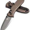 Benchmade 575SGY-2001 Mini Presidio II. This SHOT Show exclusive manual Mini Presidio II model sports a burnt bronze aluminum handle and a gray finished blade made from CPM-M4 steel. Benchmade has updated their legendary Presidio model with a smaller build and performance upgrades. This combat legend has a black anodized 6061-T4 billet aluminum handle with Benchmade’s AXIS lock system for effortless one-handed opening and closing.