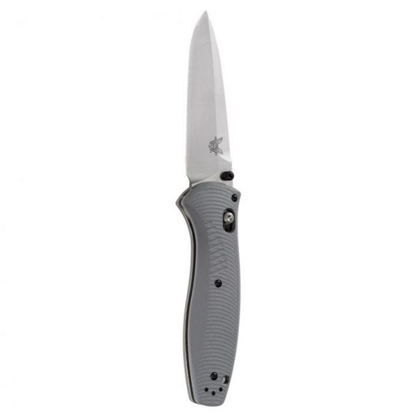 Benchmade 580-2 Barrage Folding Knife The original AXIS® Assist now with G10. Gray G10 enhances the look and feel and upgraded blade steel offers enhanced edge performance. The same awesome Barrage with a new look and feel and a performance upgrade. What’s not to like? Made in USA.