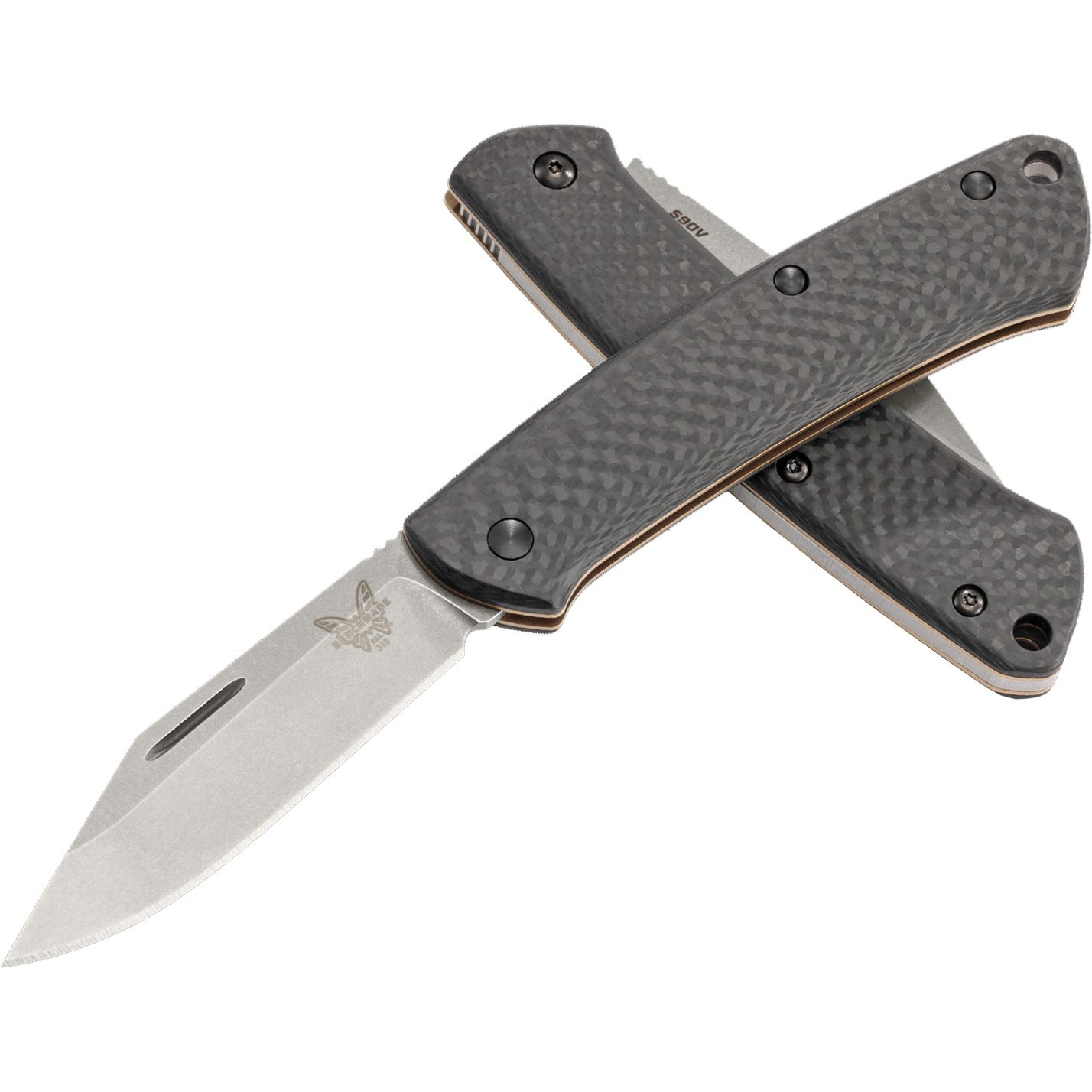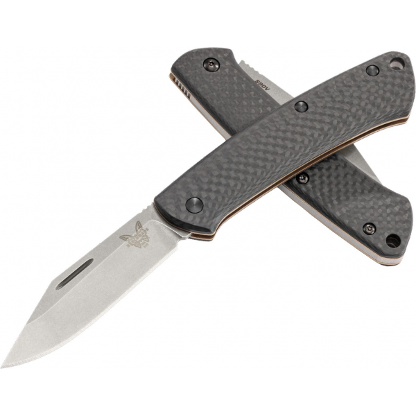 Benchmade Proper 318-2 Folding Knife. This Proper model features contoured carbon fiber scales paired with a stonewash finished clip point blade made from premium CPM-S90V stainless steel. The Benchmade Proper slip joint folder is a modern take on a classic gentleman’s knife design. Skeletonized stainless steel liners with a flat dark earth PVD coating offer reduced weight for comfortable everyday carry in a pocket or pack. A lanyard hole in the handle accommodates key ring or lanyard attachment.