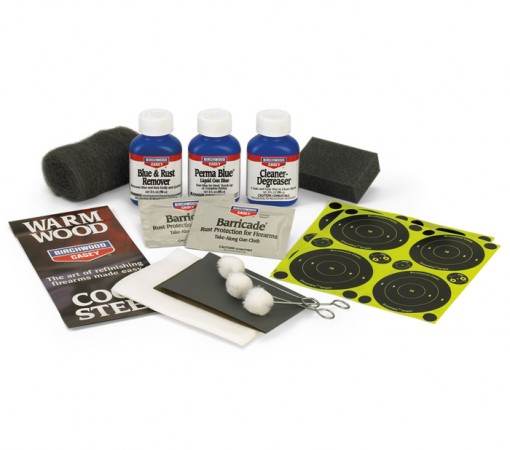 Birchwood Casey Perma Blue Liquid Gun Blue Finishing Kit – Easy to use, all-inclusive kits are the proven way to touch up or completely reblue most guns. Everything you need for a professional-looking, first-class job is included. Choose from the fast-acting Liquid Gun Blue Kit and the deep, dense Paste Gun Blue Kit.