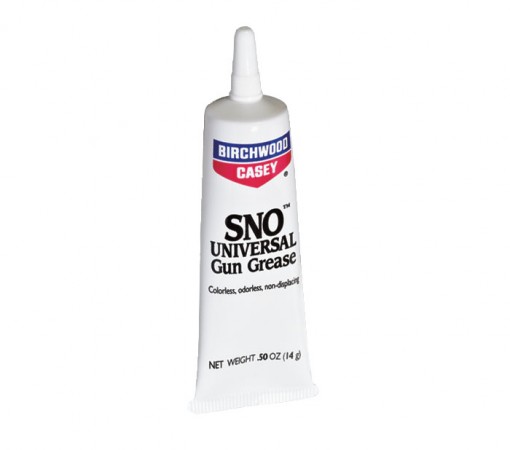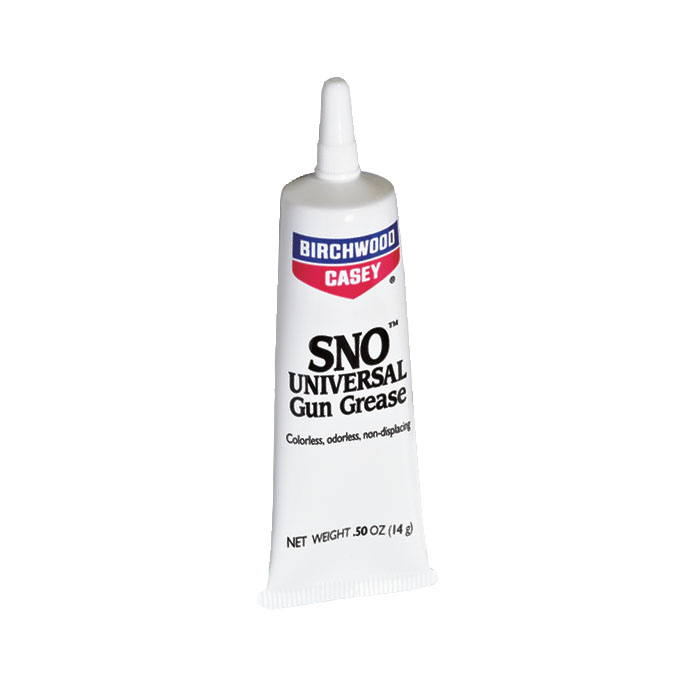 Birchwood Casey SNO Universal Gun Grease 0.75 Ounce Tube – Apply SNO Universal Gun Grease to any moving metal firearm surfaces. SNO Univeral Gun Grease reduces friction and provides smooth functioning actions and moving parts. Also use as a metal preservative when storing your firearms for extended periods of time. Simply apply liberally to metal surfaces after thoroughly cleaning. Semi-clear and non-staining.