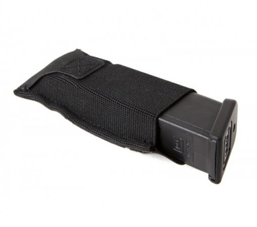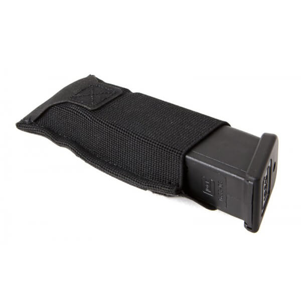 The Blue Force Gear Ten-Speed Single Mag Pouch Black holds one single or double stack magazine and is the perfect blend of speed and security. Ten-Speed® pouches use military grade elastic combined with ULTRAcomp to create a multiuse pouch that is weighs almost nothing and lays flat when not in use. The Single Pistol Mag Pouch holds one single or double stack pistol magazine up to an HK 45, multitool, light, knives, small OC spray, or other similar sized items. The Patented Helium Whisper® attachment system is compatible with all MOLLE platforms and built with a combat tested, high performance laminate that reduces weight up to 60% while equaling or exceeding the durability of 1000d CORDURA®. The latest material innovation of the Ten-Speed® pouches have been modified for optimized retention and greater durability.