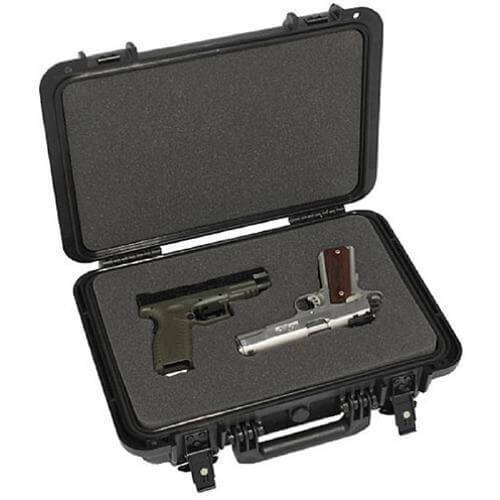 Boyt H4 Pistol Case 40005 16.5x11x5in – Protect your high performance handguns the right way when traveling or storing it with the BOYT H4 PISTOL CASE Tactical H-Series Double Handgun. Designed and engineered to meet or exceed law enforcement, military, and airline standards, this case uses high-impact, injection molded, resin construction to shield your high-priced firearm. Inside, this tough case protects your gun and its finish by surrounding it with customizable, high density foam. A waterproof and dustproof O-ring seal seals out the elements when you lock your firearm in with the case’s strong powder coated, field replaceable steel draw latches. Fully stackable and padlock compatible, the case also features a pressure relief valve. Interior Dimensions: 16.5” x 11” x 5”. Manufacturer’s lifetime warranty.