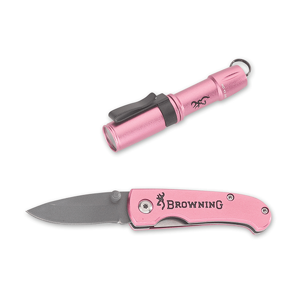 About Browning MicroBlast Flashlight and Folding Knife Combo Pink: