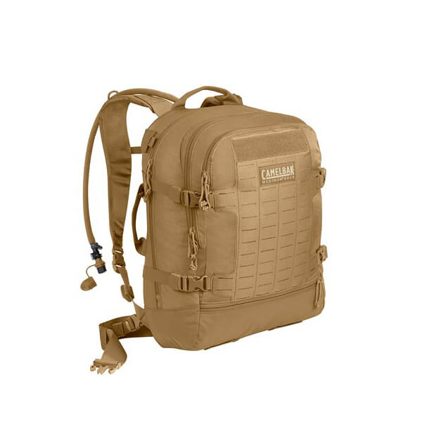 Camelbak Skirmish Coyote: Contoured back panel with Mil Spec Antidote¨ Lumbar Reservoir makes this our most comfortable pack for 1-2 day excursions.
