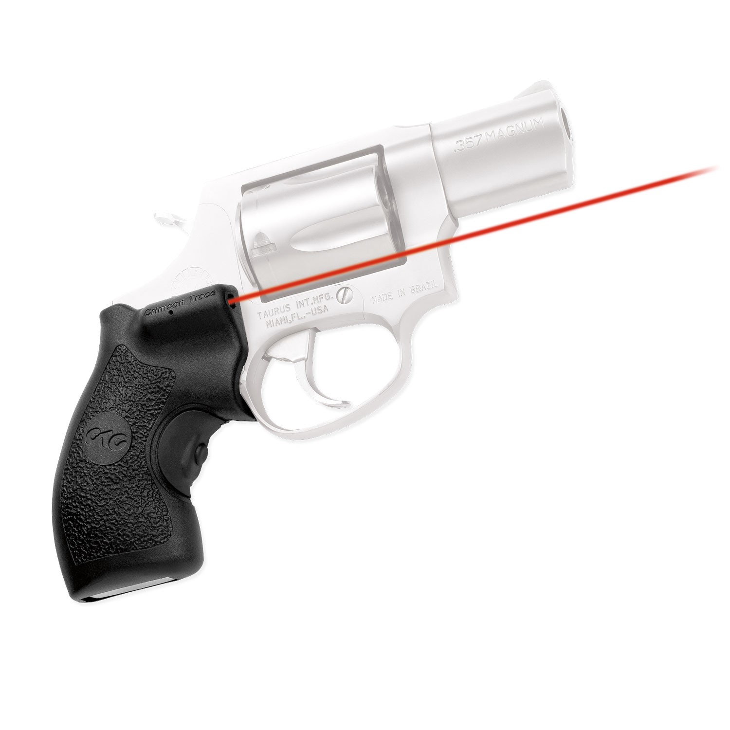 The Crimson Trace LG-185 laser sights for Taurus Small Frame revolvers features a hard polymer surface that is rugged and well suited for personal defense. The smooth feel of the polymer provides for a prompt, snag-free draw. LG-185 Lasergrips includes the durability, sighting adjustments, and the defensive advantage that Crimson Trace is known for.