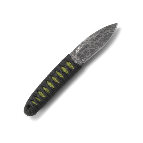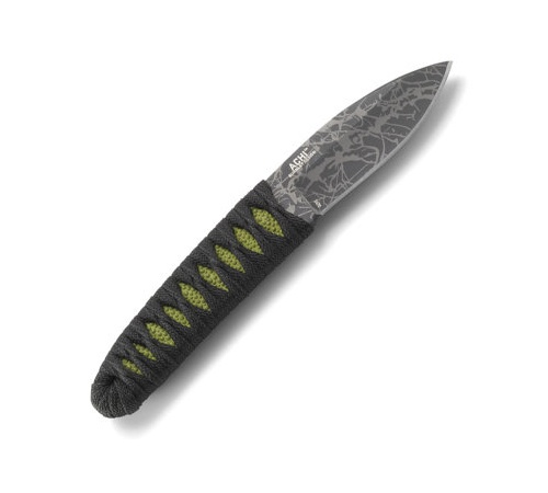 CRKT 2470 Lucas Burnley Achi Fixed Knife: Custom knifemaker Lucas Burnley has designed this Achi model for Columbia River. It’s a remarkably comfortable little fixed blade that really feels like an extension of your arm. The 2.83″ blade is made from 8Cr13MoV stainless steel with a very cool acid etched finish and hollow ground drop point shape. The 3.42″ cord wrapped handle feels amazing and secure in one’s grip and the neon green ray skin pattern underneath provides adequate traction and looks superb. Lucas Burnley creates similar knives at the custom level but this one is a fantastic deal. It’s thin, light, utilitarian in shape, very nicely made and very affordable. Includes a friction fit glass reinforced nylon sheath and j hooks to attach the knife to your belt. With an attractive cord-wrapped handle, this Lucas Burnley-designed fixed blade everyday carry knife pleases the eye and hand. Meanwhile, an acid-etched blade whips through tasks with precision and ease. Throughout it all, you’ll be enjoying every utility minute of it. Achi designer Lucas Burnley of Albuquerque, New Mexico, strives to create knives with an unparalleled level of design and function, using ever-evolving techniques and materials. He takes this approach with each of his knives, applying a combination of brutal simplicity and practicality, and a high regard for both function and visual appeal. The Achi hits on all these points, and leaves nothing to be desired. The Achi is a traditional outdoors utility knife with an intriguing shape and design. The acid-etched blade, with a slight recurve, provides powerful cutting due to the angle of the blade and grip. And the black and neon green patterned handle provides a unique aesthetic, as well as unmatched grip and cutting efficiency. Both will have you taking your time and enjoying your cutting tasks. This knife looks and feels so good as it’s getting the job done, you may almost forget you’re on the job.