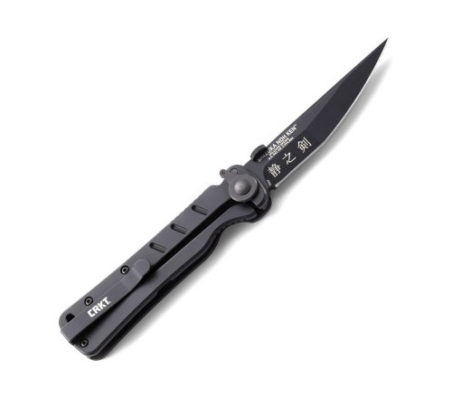 CRKT 2926 Shizuka Noh Ken Folding Knife: Proven on Missions. Ready to be transported anywhere. A new compact version of the Otanashi noh Kenª, this folding tactical knife features the manual LAWKS¨ safety innovation to perform its duty at the highest level, when you need it most. James Williams of Encinitas, CA is the designer behind the Shizuka noh Kenª. A veteran and martial arts practitioner/instructor who teaches special operations teams worldwide, his knives have become staples for military Special Forces and tactical Law Enforcement professionals. The new compact version is easier to carry, more concealable, and is the perfect complement to your personal defense tools. In use by Special Operations warriors even before its introduction to the public, this design has proven extremely effective in high-risk environments. The knife, that’s name translates to “hidden blade”, features a classic Osaraku style blade shape made famous by the 16th century Samurai warlord Takeda Shingen. This modified tanto blade design provides you with an efficient and effective cutting tool and shows up when called upon for deep penetrating and slashing duties. At 3.75″ it’s the perfect size for practical defense security wherever it’s put to use. Structural integrity is paramount with this blade. That’s why the knife comes with the manual LAWKS¨ safety innovation. LAWKS¨ sets a pin between the locking liner and the frame. This pin acts as an additional layer of safety, so the locking liner is less likely to disengage during use. Just fully deploy the blade, slide the LAWKS¨ lever forward to engage the safety system and it’s game on. When you’re done, slide the lever back, disengage the frame lock, and fold the blade into the closed position. The blade of the Shizuka noh Kenª is laser engraved with Japanese kanji that signify “The Hidden Blade,” an ideal embodied in the compact nature of this knife.The knife also comes with a G10 handle for unmatched grip and a clip that allows for deep inconspicuous carry. You’d expect nothing less from a designer who has extensive classical Samurai training. When you need a tactical folding knife that’s compact in size but packed with defensive power against any bad guys, reach for the Shizuka noh Kenª