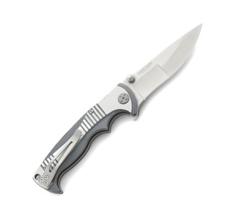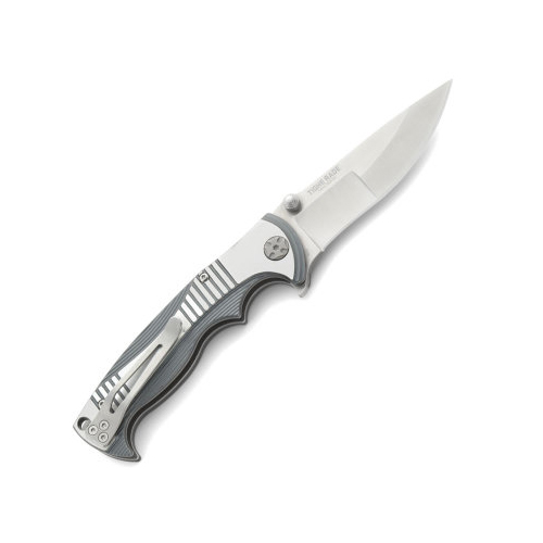 CRKT 5290 Brian Tighe Rade Folding Knife: The Tighe Rade by CRKT is a production version of Brian’s custom model and is an excellent quality production at that. The 3.38″ blade is made from 8Cr13MoV stainless steel with a satin finish and dual hollow ground drop point shape. It’s a typical Brian Tighe style design which pairs an intricate, ergonomic handle with a wicked cool, functional blade. The handle is 4.53″, made from milled 6061T6 Aluminum with a supremely ergonomic shape. It’s a button lock design that gives you nearly all the enjoyment of one of Brian’s customs without the handmade price tag. Superb design, superb execution, and an even better value! Brian Tighe doesn’t know how to do anything subtle. Case in point: his latest everyday carry folding knife with a button lock screams style. The aluminum handle features contoured, textured grooves. A compound ground blade deploys swiftly with a flipper or ambidextrous dual thumb studs. About the only thing it doesn’t do well is sit idly; it’s apt to go on a tirade. Designer Brian Tighe of Ridgeville, Ontario, Canada, upped the ante when he created the Tighe Rade. From tip to tail this one-of-a-kind, high-tech folder boasts looks that seem more at home on a fighter jet than a knife. It’s a welcomed new addition to the impressive line of award-winning knives that Tighe has become so well known for designing. The tip is ground and reinforced for stronger cutting applications, while closer to the handle it’s perfect for finer cutting tasks and wire stripping. And with its highly stylized aluminum handle and multiple usage blade, the Tighe Rade is packed with substance and style. The unique design maximizes overall performance and ease of sharpening, and the easy to operate and disengage button lock keeps everything secure while it’s open. The sophisticated and modern Tighe Rade is one part smooth operator mixed with one part showpiece. In hand or in action, this is one to show off.