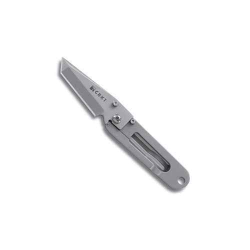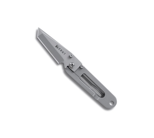 CRKT 5500 K.I.S.S. in the Dark Folding Knife: There’s nothing like the real thing. The Original K.I.S.S.¨, with its Tanto-inspired blade and bead-blast finish, is the revolutionary high-tech statement by Knifemakers’ Guild member and K.I.S.S. designer “Daddy K.I.S.S.” Ed Halligan. It stands for “Keep It Super Simple.” It’s one honey of a knife, precision fine blanked for superior fit and smooth operation. Like all folding knives in the K.I.S.S. family, Ed Halligan’s unique two-piece construction features an integral frame lock, and a breakthrough design which seals the cutting edge against the handle. A thumb stud is used to one-hand open the blade, and as the blade is fully rotated open, the frame lock snaps crisply in behind the blade to give a sound lockup. The blade can be closed with one hand, simply by releasing the frame lock. The Original K.I.S.S.¨ blade shape is Tanto-inspired Chisel-Point grind on the front and flat on the backside so that when the blade is closed onto its handle/frame, the precision fit effectively “seals” the cutting edge to the frame, even though it’s exposed. Both Razor-Sharp and Combined Razor-Sharp and Triple-Pointª Serrated edge grinds are available. Both blade and frame are 3CR13 stainless steel in a fine bead-blast finish. The design of the K.I.S.S. series pocket/money clip permits them to be used in a variety of ways: clipped to the pocket; as a money clip knife; and with split-ring or lanyard, as a key chain knife. In the wake of the success of the K.I.S.S., a flock of imitators has appeared; none offers the simple elegance of Ed Halligan’s original design, and none offers the value of CRKT quality manufacturing. In fact, the more Ed’s design is imitated, the better it looks.