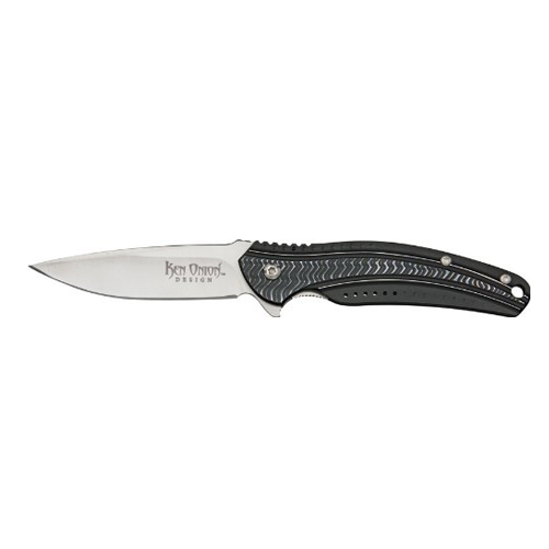 CRKT K410KXP Ken Onion Ripple Folding Knife: Get the same contemporary styling, smooth flowing profile and all around fresh design as the original RippleÑnow available with aluminum scales. The aluminum handles are anodized black and then hand buffed to expose the silver aluminum, creating an attractive, randomized pocket worn finish to the handles. Its modified drop-point blade is easy to open single handedly with the blade opener flipper. The Ripple designed by Ken Onion also features the innovative IKBS ball bearing system for a strong, smooth pivot. When you are seeking a perfect every day carry knife choice The Rippleª aluminum folder is an ideal overall low profile, lightweight edc.