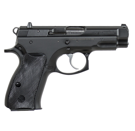 At 5″ tall with a barrel length of just under 4″, the CZ 75 Compact model shaves a little more than 3/4″ off the length and about 1/2″ off the height of the full-size CZ 75. Its reduced size allows it to readily disappear under regular clothing. The CZ 75 DA/SA action with a manual safety lever provides the user with two options for carry: hammer-back with the safety on for single action operation or manually decocked for a double action first shot with no need to remember to take off the safety before firing. Because the 75 Compact retains the steel frame of the original 75, only 2.4 oz of weight is lost, making it the softest-shooting compact in the CZ 75 line.