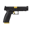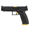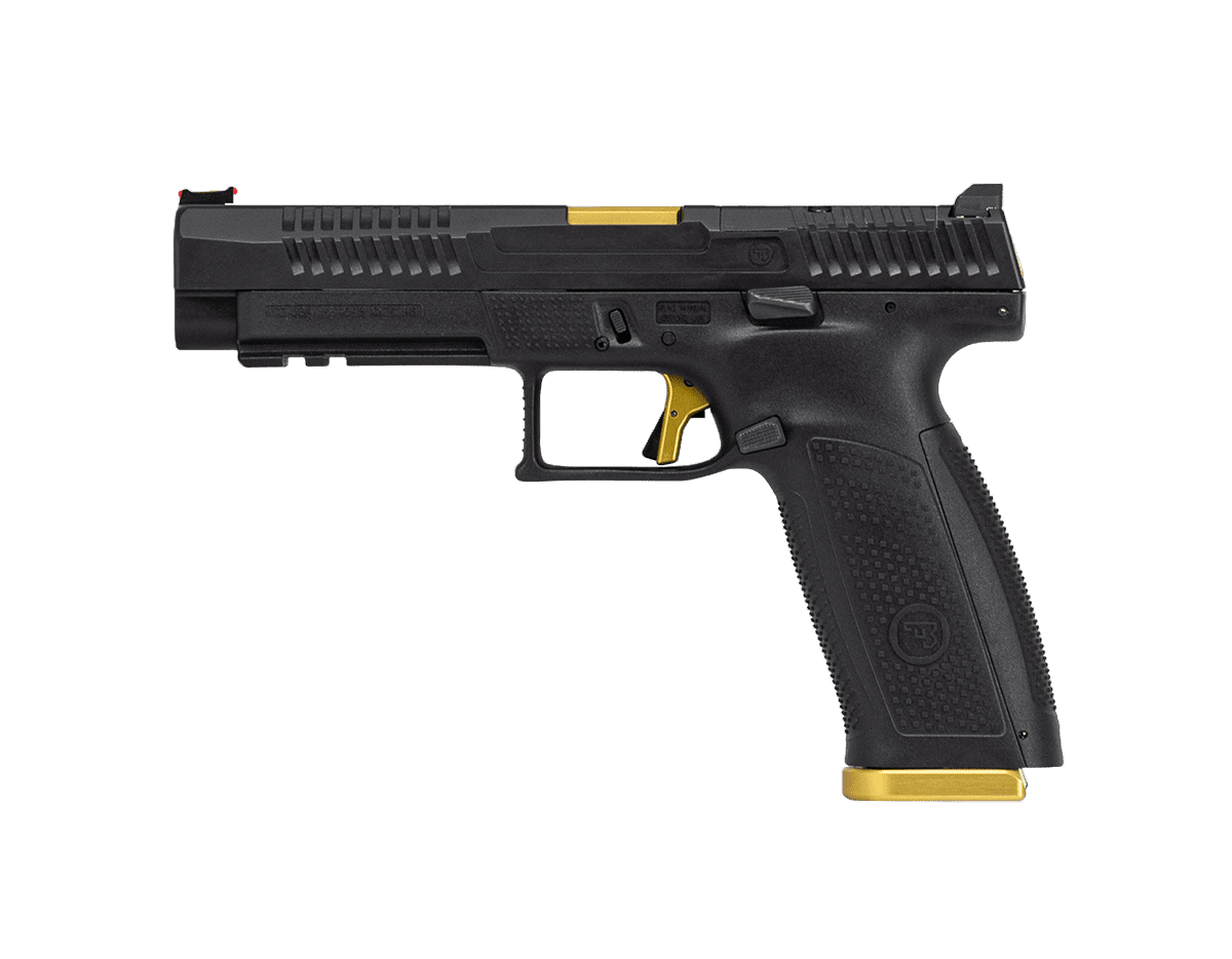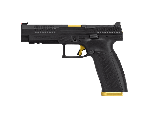 While many of CZ’s tactical handguns were born of competition guns, the new CZ P-10 F Competition-Ready pistol followed the opposite trajectory. The new P-10 F Competition-Ready utilizes the full-size P-10 F frame and has a barrel and slide that are a half-inch longer, providing a longer sight radius for the included fiber optic front sight and fixed serrated rear sight. Additionally, like other P-10 models, the slide is milled to accept mounting plates for the most popular micro red-dot optics on the market. The pistol is outfitted with an Apex Tactical extended magazine catch, extended slide stop, back slide cover along with a HB Industries trigger for increased performance. Since every competition gun needs a little flash, gold accents on the barrel slide cover and on the trigger and three magazines equipped with aluminum Henning Group bases make this handgun stand out in the P-10 line and on the firing line.