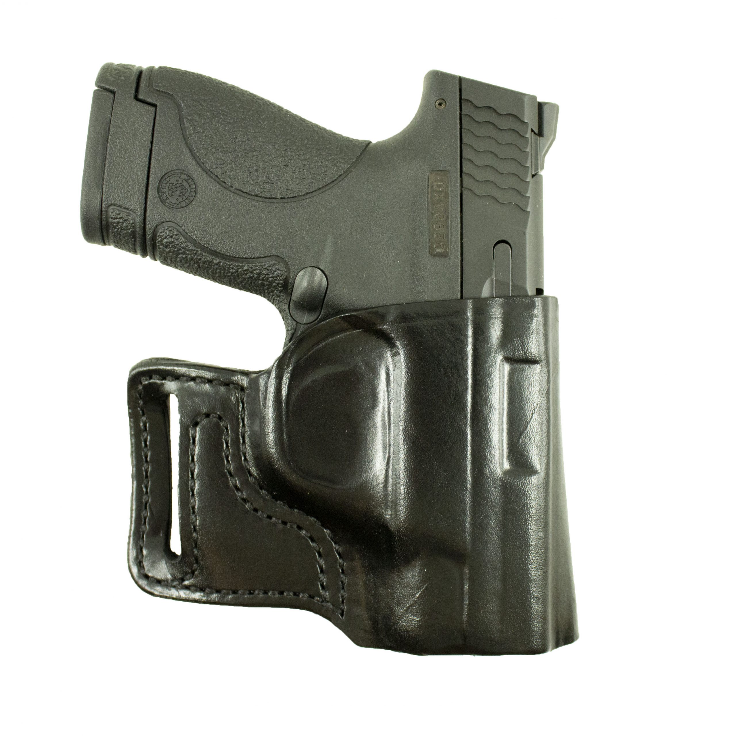 Desantis E-GAT Slide Holster – Right, Black 115BAX7Z0 – S&W M&P Shield 9/40 – The DeSantis E-GAT Slide Holster is a basic neutral concealment OWB holster that works equally well on the strong side or cross draw. This DeSantis E-GAT Slide Belt Holster works with both revolvers and autos and is available in a black-finished top grain leather. The DeSantis E-GAT Slide Grain Leather Belt Holster has been simplified in the production process to save you quite a few bucks, without costing you anything in performance.