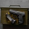 The FNS-9C (Compact) offers the same features as the standard models but have 3.6″ barrels and is designed to be snag-free for better concealment and a faster draw. The front sight also has a larger dot for faster target acquisition. The FNS-9C Compact comes with two 12-round and one 17-round magazine. The FNS series of striker-fired, autoloading pistols, now available in a compact size for concealed carry, offer the simplicity of double-action striker-fired operation combined with the proven ergonomics of the FNX platform. Both the slide and barrel are stainless steel, and the checkered polymer frame has two interchangeable backstraps with lanyard eyelets. A MIL-STD 1913 mounting rail on the underside accepts tactical lights and lasers.