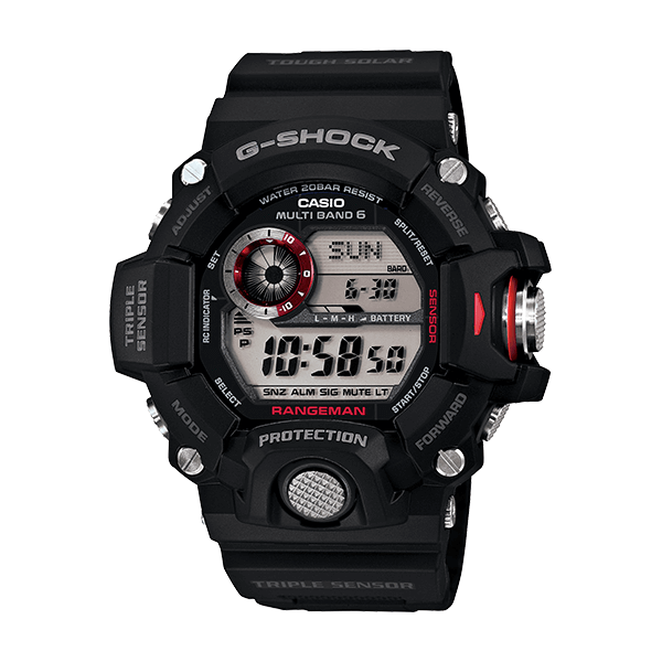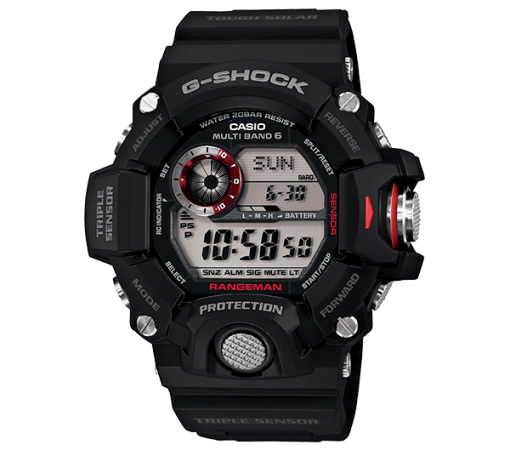 Introducing G-Shock Rangeman GW9400-1, the latest addition to the Master of G series of tough and rugged timepieces that are designed and engineered to stand up to the most grueling conditions imaginable. RANGEMAN employs a Shock Resistant Triple Sensor, which makes it capable of keeping altitude, barometric pressure, temperature and direction readings at your fingertips.