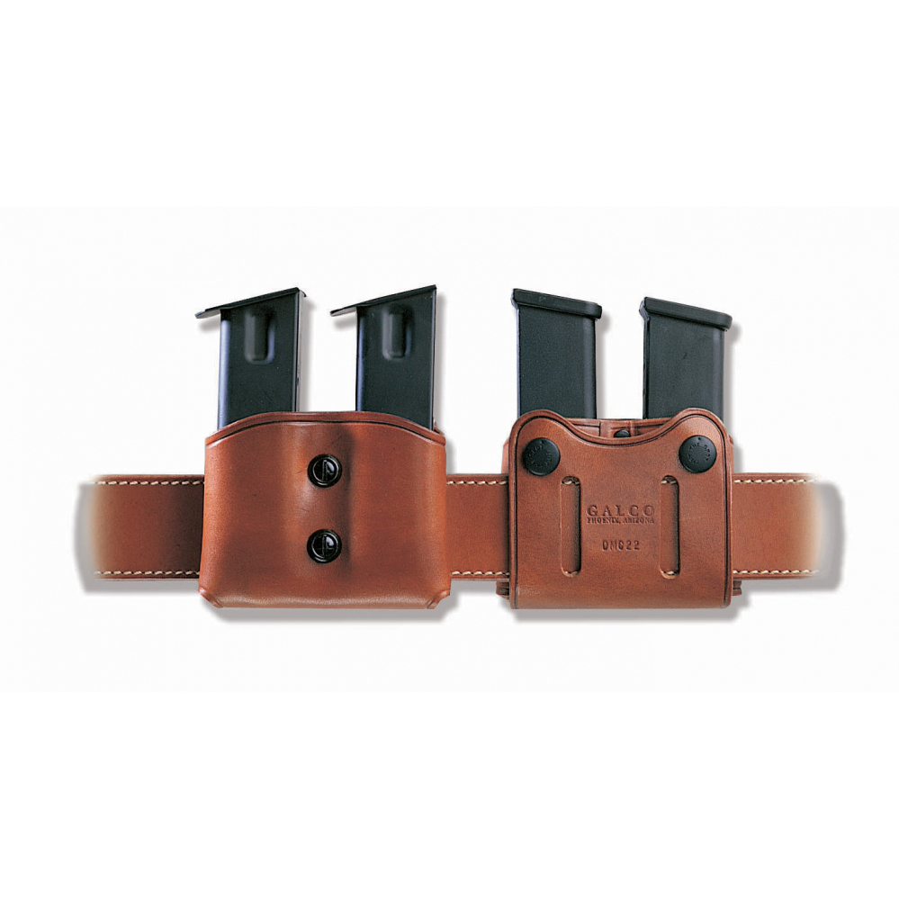 Galco Dmc Double Magazine Pouch 45 Acp, 10mm Single Stack Magazines Leather Tan – Galco Double Magazine Carrier – This exceptional wrap-around design features 2 one-way snaps on back, allowing it to fasten to your belt vertically. It also includes two tension screw adjustments on the front, providing a precision fit. It is constructed of premium saddle leather and is designed to fit belts 1″-1 1/4″ through belt slots and 1 1/2″-1 3/4″ through the belt channel. This ambidextrous design is available in tan, Havana brown or black.
