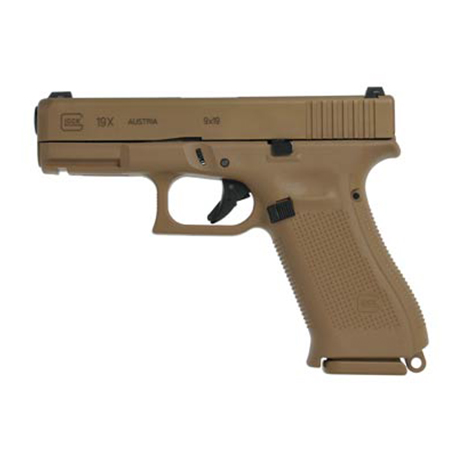 The 19X comes in the coyote color with the first-ever factory colored slide, finished with a nPVD slide coating to prevent corrosion. Additional features include the GLOCK Marksman Barrel (GMB), no finger grooves, ambidextrous slide stop levers and lanyard loop. Included with the pistol is a standard 17-round magazine, two 17+2-round magazines and coyote-colored pistol case.