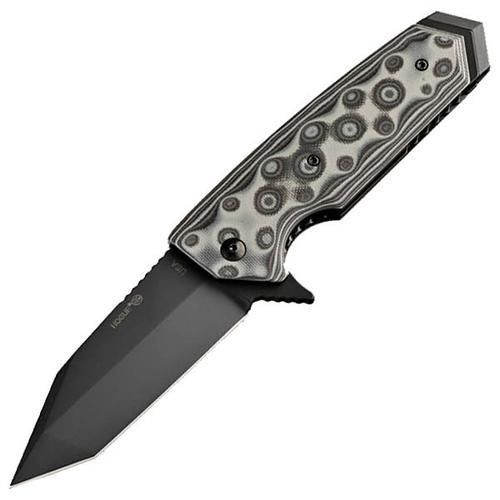 Introduced in 2012, the Hogue 34229 EX-02 is the first liner lock in the Extreme Series Knives. Every aspect was carefully engineered to ensure the user would get a tool they could treasure and pass down to the next generation. Unique features about this knife include an extra thick hardened stainless steel liner lock and a manual safety that prevents the lock from failing under extreme use. This knife design can be effortlessly opened using the ambidextrous thumb stud or optional flipper tab. The flipper option allows for faster opening and provides a guard in front of the finger groove. The blade can be easily closed with one hand, even while wearing gloves. A solid back end allows the knife to be used as a striking tool and a deep finger groove helps control the EX-02 during use.