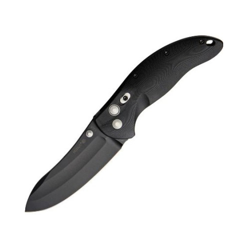 The Hogue 34450 EX-04 Tactical Folding Knife is the next evolution in the Hogue Extreme Series of knives. The Hogue EX-04 incorporates the rock-solid construction, materials, and plunge lock of the EX-01 and EX-03 models. The cryogenically treated 154CM Stainless Steel blade and lightweight G-Mascus Handles are standard with the EX-04 models. As usual, blades are hand sharpened and then honed to a razor’s edge. Besides being made from the same stock with the same attention to detail, the blades of the EX-04 series are radically different from earlier versions from Hogue. Available with either an upswept or modified wharncliffe style blade which nest’s perfectly in the ergonomic G-Mascus handle. Both versions feature dual grinds which create a keen cutting edge and add to the overall “look” of the knife. Additionally, the dual grinds serve the purpose of creating a blood groove that keeps the blade from sticking into objects. Additionally, the Wharncliffe style blade has been modified with a slight curve that provides just enough belly to make it more practical for general purpose use. The EX-04 features an ergonomically designed handle that is comfortable in either saber or ice-pick grips.