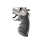 Hogue Handgun Monogrip Square Butt S&W K& L Frame Square Butt: One-piece rubber grips for revolvers. Grips slide on the frame from the bottom, a special steel stirrup device clips over stockpin or bottom strap, grip screws to stirrup. Orthopedic handshape, ambidextrous palm swells and a generous recoil shoulder. Relieved for speed loaders. Black color with cobblestone texture.