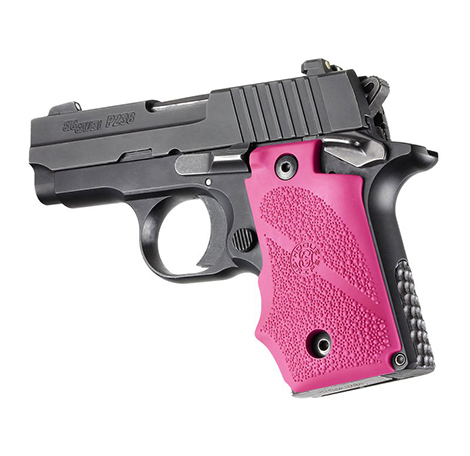 Hogue Sig P238 Rubber Grips Pink w/ Finger Grooves are molded from durable synthetic rubber that is neither spongy nor tacky yet provides a soft recoil absorbing feel without affecting accuracy. This modern rubber requires a completely different molding process than ordinary neoprene resulting in a much superior grip. The flexibility of our materials and molding process has allowed us to produce rubber grips with features that out perform all other makes.