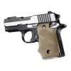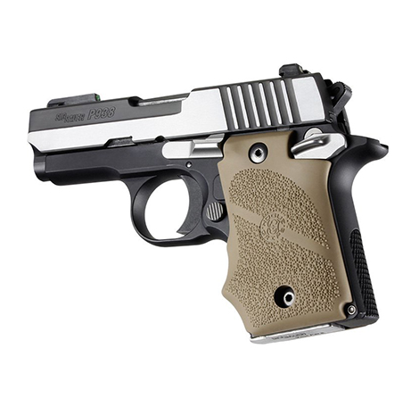 Hogue SIG P938 Ambi Safety Rubber Grip FDE are molded from durable synthetic rubber that is neither spongy nor tacky yet provides a soft recoil absorbing feel without affecting accuracy. This modern rubber requires a completely different molding process than ordinary neoprene resulting in a much superior grip. The flexibility of our materials and molding process has allowed us to produce rubber grips with features that out perform all other makes.