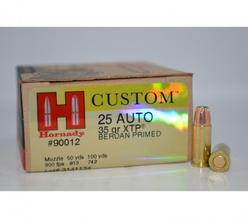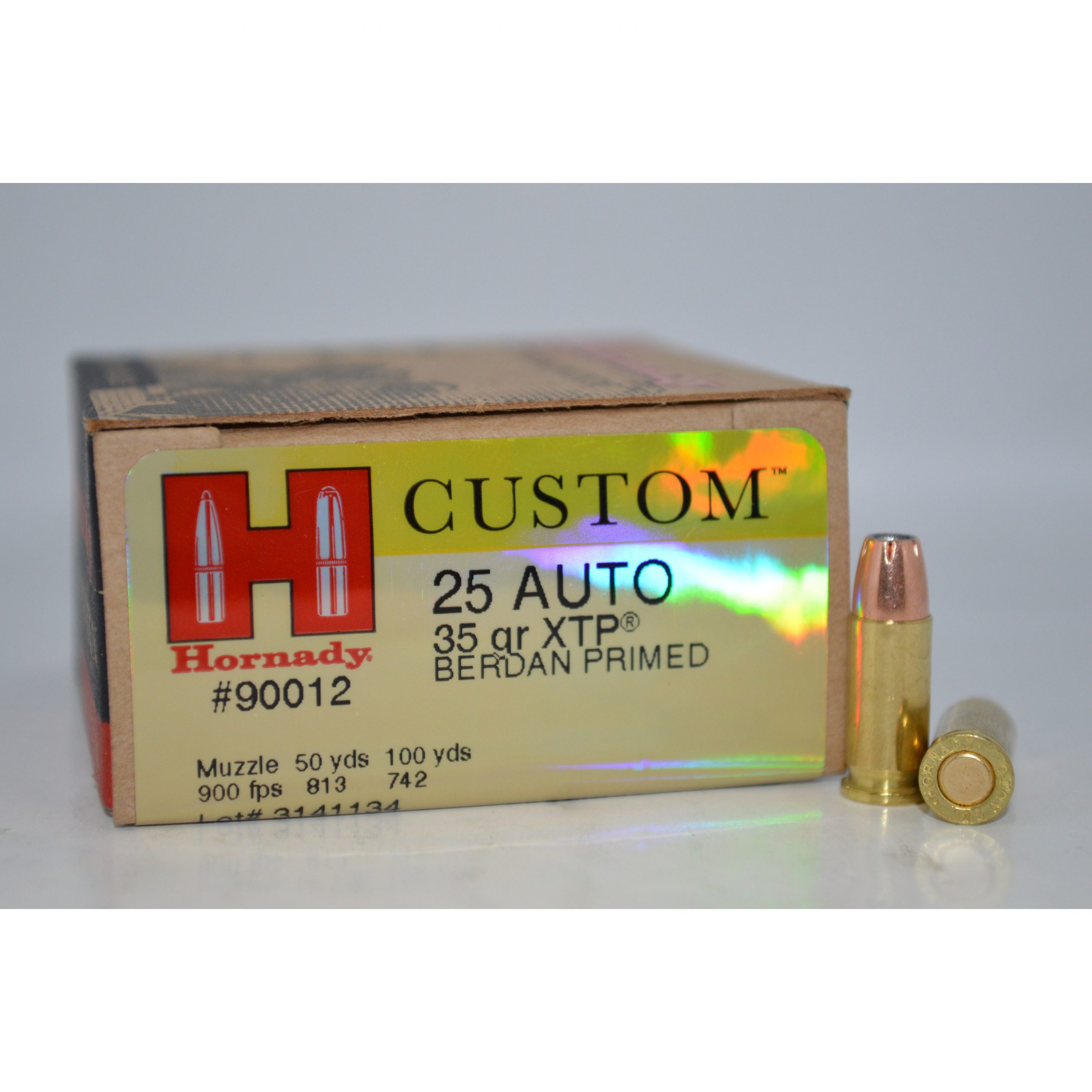 Handgun shooters looking for supreme accuracy and maximum knock down power have come to rely on Hornady 25 Auto 35 gr, loaded with the famous Hornady XTP (Extreme Terminal Performance) bullet. Every round of Hornady Custom ammunition is hand inspected before packaging to ensure the highest levels of quality control. It is manufactured to give shooters and hunters the advantage of hand-loaded accuracy in a factory load.