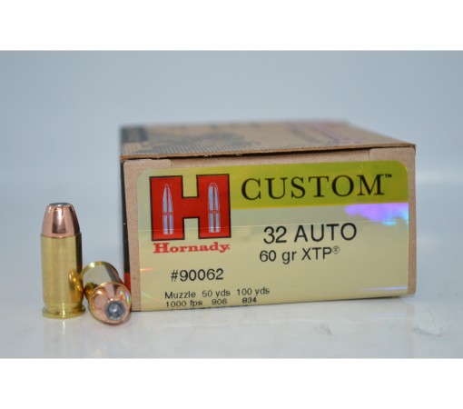 Handgun shooters looking for supreme accuracy and maximum knock down power have come to rely on Hornady 32 Auto 60 gr, loaded with the famous Hornady XTP (Extreme Terminal Performance) bullet. Every round of Hornady Custom ammunition is hand inspected before packaging to ensure the highest levels of quality control. It is manufactured to give shooters and hunters the advantage of hand-loaded accuracy in a factory load.