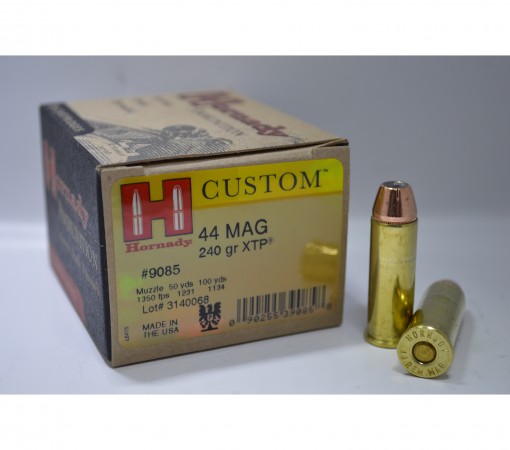 All Hornady 44 Mag Custom pistol ammo is loaded with either the famous Hornady XTP (Extreme Terminal Performance) bullet, our FMJ or our new FTX bullet. All are supremely accurate, and deliver maximum knockdown power.