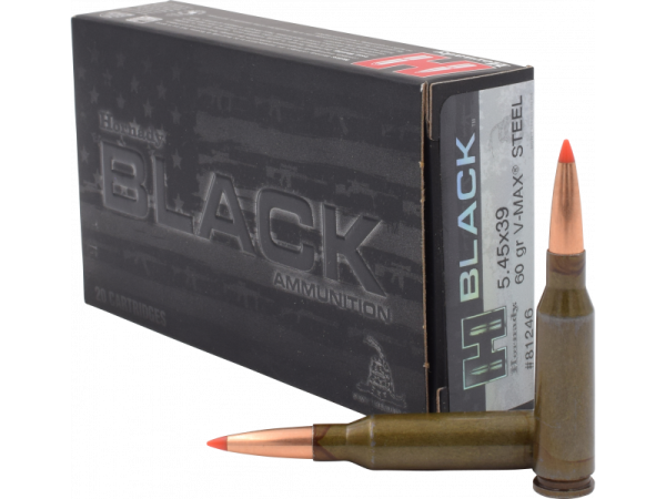 Hornady Black 5.45x39mm Ammo 60 Grain v-max steel case