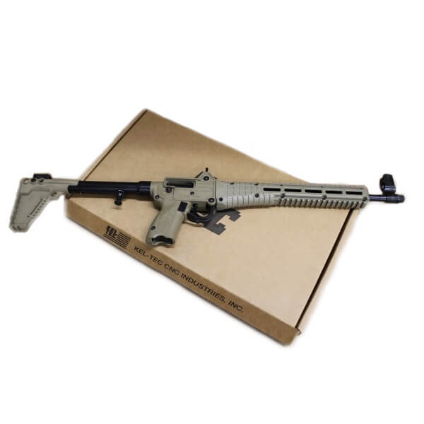 The semi-auto KelTec Sub-2000 was created to be the most convenient pistol caliber rifle available. It is adjustable with a 3-position stock adding about 5/8in per slot and folds in half to 16.25″ x 7″ for easy storage or aid in concealment. The KelTec Sub-2000 comes in many popular handgun magazine configurations, but this one comes with a Glock G17 magwell. No tools are necessary for disassembly with the Sub-2000. This platform is ideal for backpacking trips and situations where you need all the available space for storage or when weight is crucial element in your loadout. Weighing in at 4.25 lbs unloaded, and a trigger pull at 9.5 lbs with a barrel twist rate at 1:10″. Picatinny Rails on both top and bottom of the firearm, with 4 slots of M-LOK on each side of the firearm. The barrel comes threaded in 1/2″-28 topped off with a thread protector. Comes with one(1) Magpul PMAG 17 GL9. This KelTec Sub-2000 FDE comes with a Flat Dark Earth color on all-polymer elements.