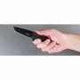 The Kershaw 1990 Brawler Assisted Opening Knife starts with a modified tanto blade—a shape often found in tactical and rescue knives that may be required to punch through tough materials. The tanto is an ideal shape for these piercing tasks because there is plenty of metal to support the point, making it stronger than many other blade shapes. You’ll notice that the top of the Brawler’s blade has a grind, too. This is called a swedge; it helps narrow the blade, adding to its piercing power. At the same time, the Brawler’s straight belly offers excellent cutting capacity, is perfect for bearing down on a task, and is easy to resharpen. All this makes the Brawler an excellent utility knife. The Brawler’s handle is just as functional. The angled handle curves into the palm of the user’s hand. Jimping on the back of the blade offers additional traction. With the blade deployed, the flipper doubles as a finger guard and provides additional hand protection during knife use. For fast and easy one-handed opening, the Brawler is equipped with SpeedSafe. Just pull back on the blade protrusion and the SpeedSafe assisted opening system takes over, moving the blade out of the handle, ready for use. Sturdy glass-filled nylon handle scales, a secure locking liner, and our four-position Quad-Carry pocket clip complete the package.