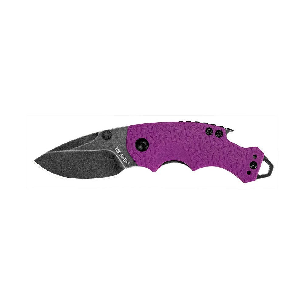 Kershaw 8700PURBW Shuffle Multi-Function Folding Knife: The Shuffle is a compact, versatile & tough multi-function tool. You’ll like its compact size and discovering how useful that stubby little blade really is. You’ll also like how nicely the finger contours fit your hand and how our K-Texture handle provides an extra secure grip. The Shuffle has some additional tricks up its sleeve, too. It has a flathead screwdriver at the butt of the knife, which doubles as a lanyard attachment, and a handy bottlecap lifter built into the back of the knife. The blade is made of made of a steel known for toughness and durability. The K-Texture handleÑcomposed of a repeating pattern of the Kershaw logo “k”Ñis exclusive to Kershaw and enhances grip. A liner lock secures the Shuffle’s blade open in use, but closes easily when its tasks are done. As a utility knife, a work knife, or just a great multi-function pocketknife, the Shuffle is the right choice. And if you’re looking for an attention-getting knife, this purple Shuffle will get the job done.