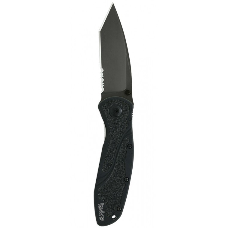 The Kershaw Blur 1670TBLKST Assisted Opening Knife offers all the great grip advantages of the other Blurs on the force, but this one offers tactical styling with a modified tanto blade with partial serration. With its angled shape, the tanto blade provides additional piercing power to penetrate tough materials. The unique shape puts more steel behind the point to support its piercing tasks. We’ve also found that the short front edge is particularly handy for opening boxes. For razor sharpness, Kershaw hollow grinds the edge. Then for additional versatility, Kershaw added partial serration to the blade, giving you a great tool for cutting through materials such as webbing or rope. All this makes the Tanto Blur a good choice for situations in which you’re going to need to make an impact on your environment. In an emergency, could be a real lifesaver. The Tanto Blur’s blade is built of high-performance Sandvik 14C28N stainless blade steel for corrosion resistance and hardness. The black DLC (Diamond-Like Carbon) coating provides additional extra corrosion resistance and is non-reflective. Black anodized aluminum handles of durable 6061-T6 aircraft aluminum with sure-grip Trac-Tec inserts complete the Tanto Blur’s discrete, matte look.