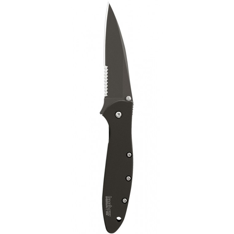If you love the Kershaw Leek, but prefer a black knife, the Kershaw Leek 660CKTST Black Serrated might be your perfect EDC. To create this matte-black look, Kershaw engineers ionize metal and deposit it on both blade and handle as a microns-thin coating. This process results in a coating known as DLC, or Diamond-Like Carbon, which is hard and scratch resistant. With its 3-inch blade, the Leek is a good-sized knife, but not too big. The slim design makes it easy to carry and its razor-sharp blade of high-performance Sandvik 14C28N means it can take care of a full range of cutting tasks. The blade is a modified drop-point, so it’s a good slicing knife, while the slim tip gives it piercing capability and the ability to do detailed work. For a partially serrated blade, choose the 1660CKTST Leek in basic black. The Leek features the SpeedSafe ambidextrous assisted opening system. Whether you’re left-handed or right-handed, just pull back on the blade protrusion or push outward on the thumbstud and the Leek’s blade is ready to go to work. For confident blade use, a super-secure frame lock keeps the blade locked during use and a Tip-Lock slider locks the blade closed when folded. The pocketclip can be configured for tip-up or tip-down carry and the handle is drilled to accept a lanyard.
