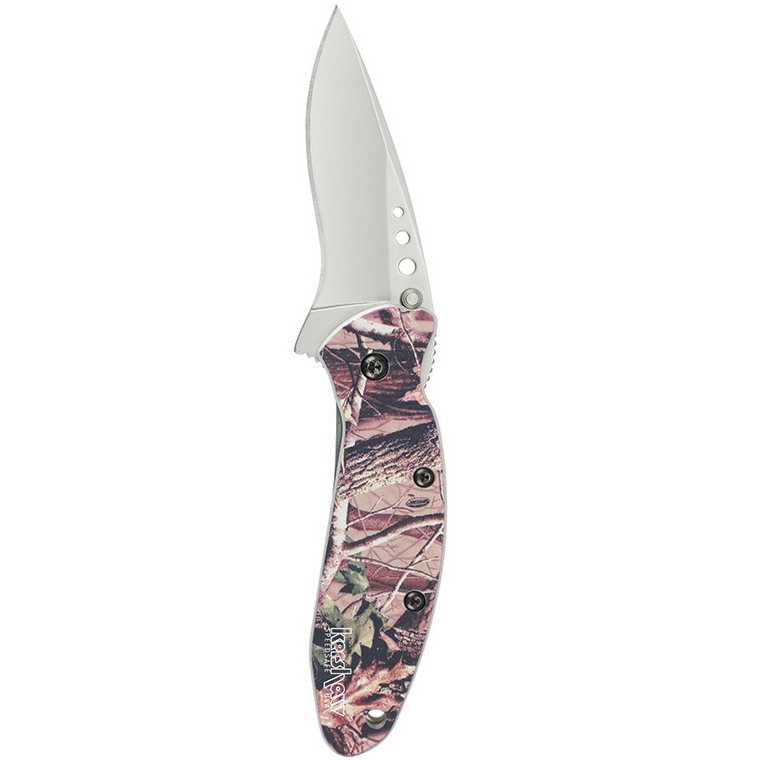 The Kershaw Scallion 1620C Folding Knife is one of our most popular knives. With its handy 2 1/4-inch blade, the Scallion is the perfect size for lightweight and convenient pocket carry. And with its RealTree Hardwoods pattern camo handle, it’s also the perfect size and the perfect knife for your next hunting trip—or every day carry. The Kershaw Scallion’s recurve blade makes it handy for most campsite and field chores. It features a high-carbon stainless steel blade with good edge retention and excellent corrosion resistance. The bead-blasted finish gives the blade a matte look and it’s easy to maintain, too. Like all Scallions, the camo Scallion is equipped with SpeedSafe assisted opening. With SpeedSafe, you can open the blade one-handed—which can be extra convenient when you’re in the great outdoors. Just pull back on the ambidextrous blade protrusion or push on the thumbstud and the blade moves out of the handle, ready for use. The camo Scallion’s handle is anodized aluminum over steel liners. Anodizing not only enables the aluminum to accept the camo pattern but it actually strengthens the aluminum. For safety, the camo Scallion has a locking liner to keep it locked safely open and a Tip-Lock to keep it locked safely closed during transport.