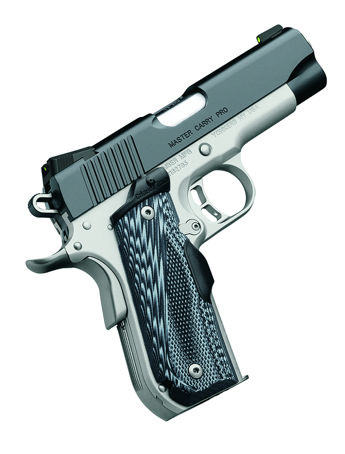The Kimber Master Carry Pro combines Kimber performance and popular concealed-carry features into an extraordinary package. Tactical Wedge night sights, Round Heel Frame with serrated mainspring housing and new Crimson Trace Master Series Lasergrips are all standard. One is sure to meet any need.