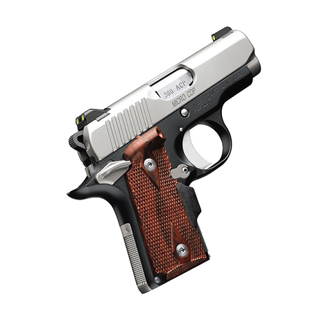 The Micro Carry has a matte black non-reflective finish to aid concealability. Edges are rounded and blended to avoid snags, and black rubber grips aid control. Like all Micro pistols, it has an aluminum frame and stainless steel barrel. The Micro Carry Stainless goes a step farther, adding a stainless steel slide for additional resistance to moisture and salt. Both CDP and Stainless Raptor models are built to exact specifications with Kimber Custom Shop Features such as night sights, checkering and texturing on the front strap and mainspring housing, stainless steel controls and ambidextrous thumb safety. The Micro CDP (LG) also includes Crimson Trace Lasergrips.